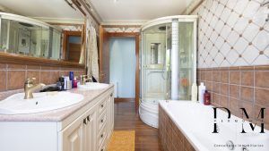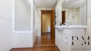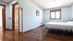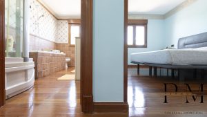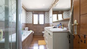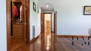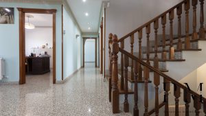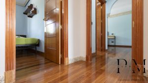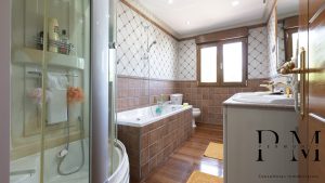 La vivienda principal de 600 m² y 1.500 m² de parcela, se encuentra distribuida en tres plantas y se destaca por sus calidades excepcionales: columnas y suelos de granito nacional, ventanas de PVC, maderas nobles y calefacción independiente con dos calderas.