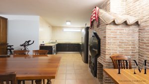 El sótano es un espacio versátil que incluye una bodega-salón-comedor, cocina con horno de leña, dormitorio, baño y garaje. Además, la propiedad cuenta con una cochera exterior, piscina, cenador gigante, pista de frontón y baloncesto.